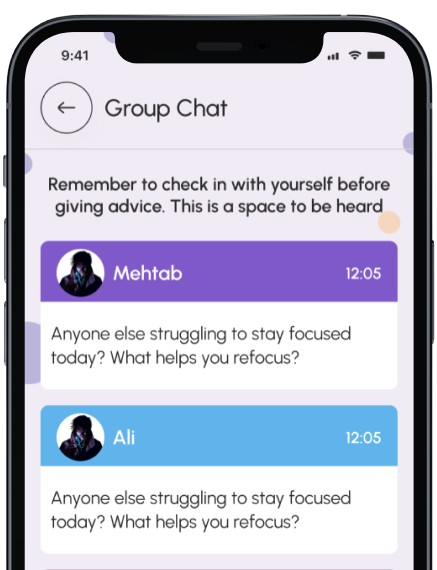 - Connect in group chat for peer support